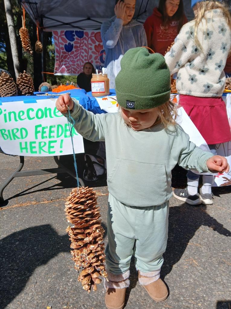 At the Myers Mountain Fall Fest, we rented out a booth and taught and helped kids decorate pine cones to take home.
